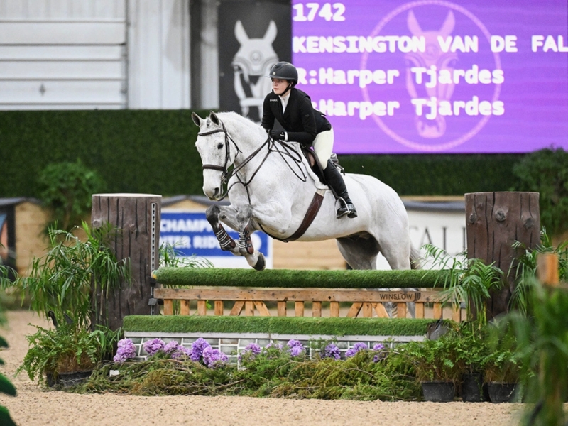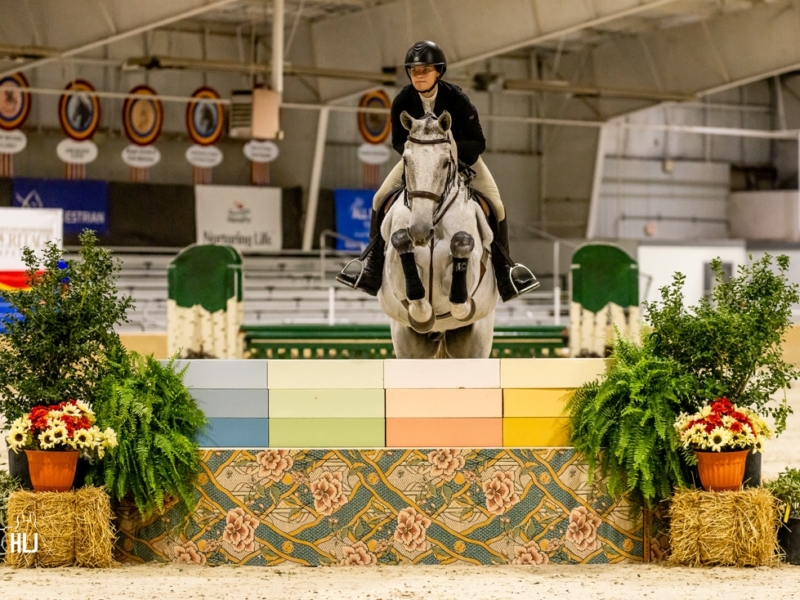 In October 2021, I purchased my Children’s Hunter, Vegas. I competed in the Thoroughbred hunters, the 12-14 Children’s Hunters, and some medal classes. This horse and I accomplished a lot in the two short years I owned him. We were High Point Children’s Hunter our first year together. We qualified for Take 2 Thoroughbred Finals and got 4th out of 21 horse and rider combinations. While at Take 2 finals my mom, my trainer, and I watched Maclay Regionals. Watching this class showed me that I liked the challenge of the Equitation classes. This was the moment I decided I wanted an Equitation Horse.