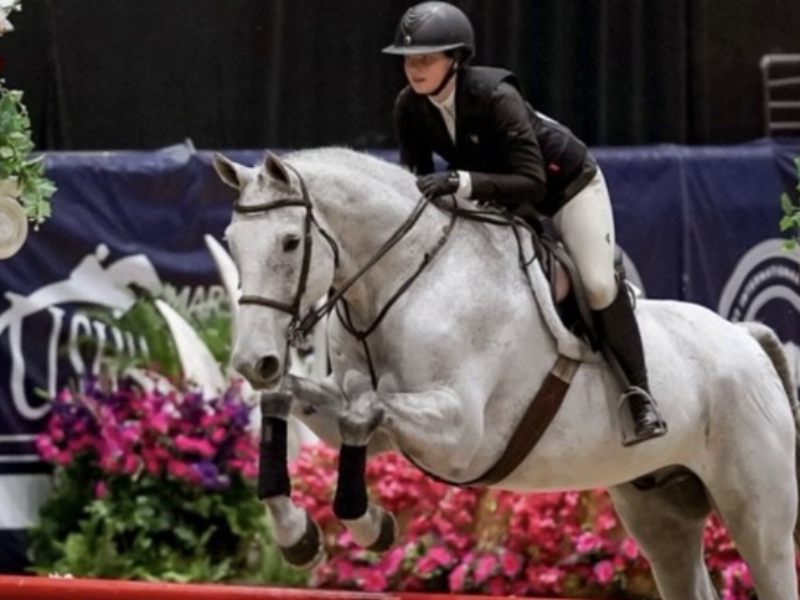 Also while at Take 2 Finals I tried a few horses. There was one specifically that caught my eye, Scrappy Aka. Kensington Van De Falieberg. We bought him October 10th, 2022. Scrappy has really shown me the ropes of the Equitation classes, but we still have far to go. I started in Gulfport, Mississippi in the 3’3” Large Junior Hunter Division. The next week we started the Equitation classes. I started with the 3’3” NHS class and then did the 3’6” Maclay. Ever since Gulfport I have been doing most of the Equitation classes offered such as: the 3’3” NHS, the 3’6” ASPCA Maclay Medal, the USHJA 3’3” Hunt Seat Medal, the USEF 3’6” Hunt Seat Medal, and the 3’3” NCEA medal. I recently attended many shows and had great success in the USHJA 3’3” Hunt Seat Medal and the USEF 3’6” Hunt Seat Medal. I qualified and competed at NHS Finals two years in a row. I had a great round this year on a horse I rode for less than 9 hours before competing because my horse got Pigeon fever right before the final. I also qualified and competed at USHJA Hunt Seat Medal Finals and had two great rounds. I spent last spring and a bit this winter attending multiple college prep camps further solidifying my desire to ride at the collegiate level. I have only owned Scrappy for 2 years and I am ecstatic for our future together.